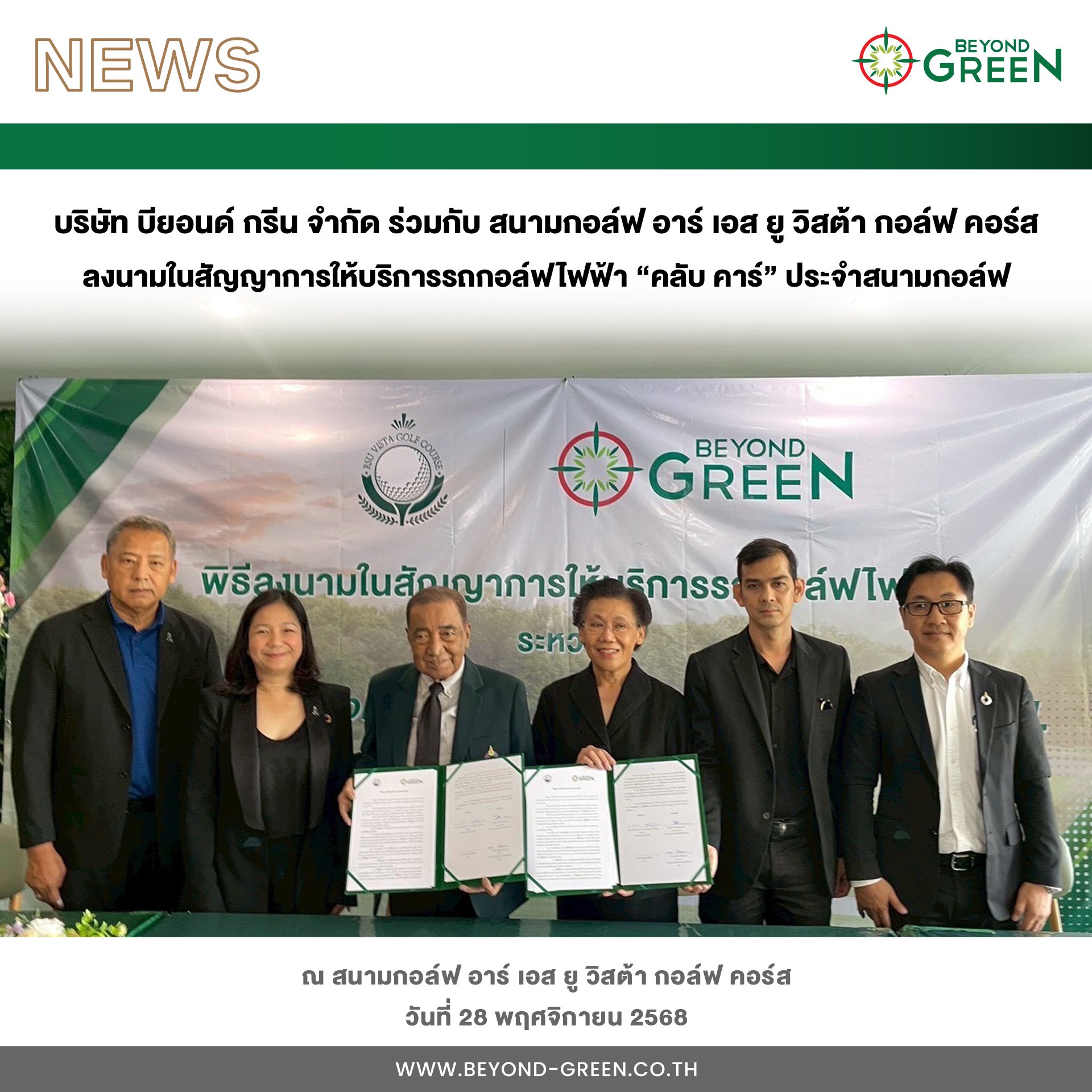 บียอนด์ กรีน ร่วมกับ สนามกอล์ฟ อาร์ เอส ยู วิสต้า กอล์ฟ คอร์ส ลงนามสัญญาการให้บริการรถกอล์ฟไฟฟ้า "คลับ คาร์" ประจำสนามกอล์ฟ