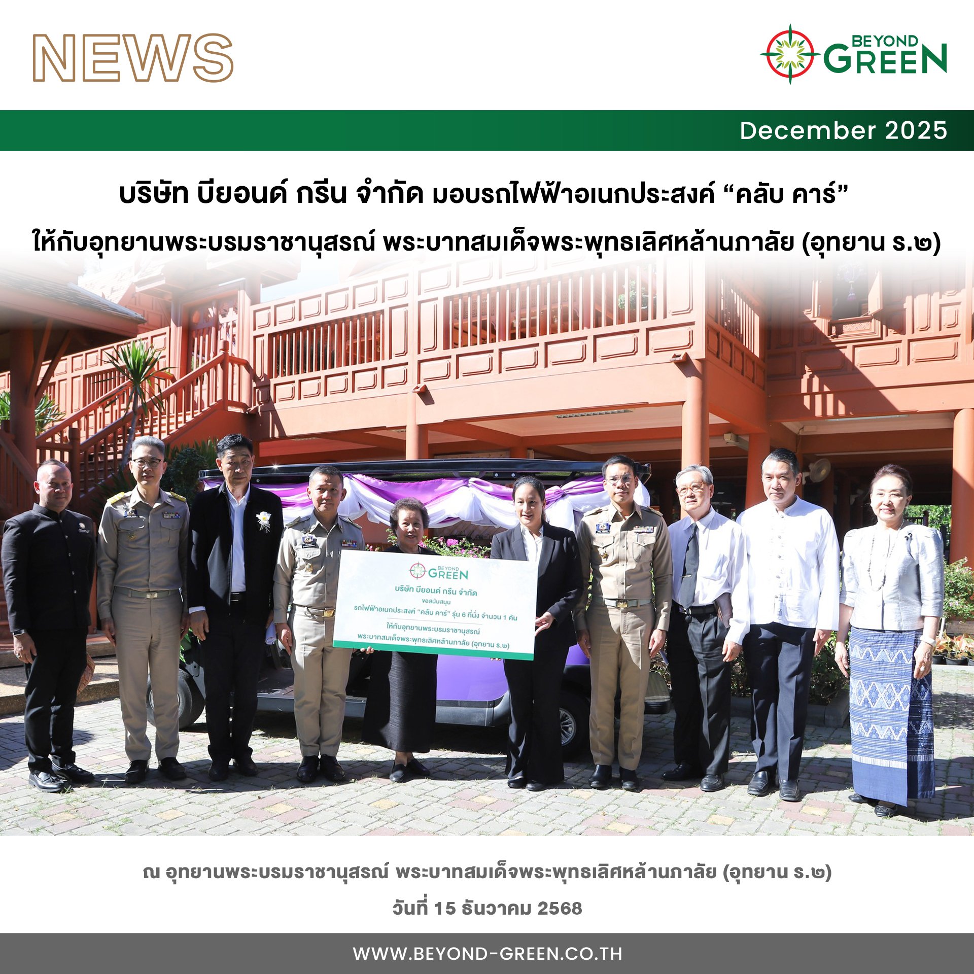 Beyond Green Co.,Ltd. has donated electric golf cart from Club Car 6 Seater to the King Rama II Memorial Park, Samut Songkhram Province.